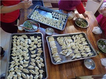 志愿者和养老院老人一起包饺子 |