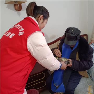 志愿者给腿脚不便的老人们送饺子 |