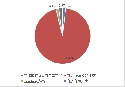 2023年度一般公共预算财政拨款支出277.4万元,主要用于以下方面:一般公共服务支出0万元,占0%;教育支出0万元,占0%;科学技术支出0万元,占0%;文化旅游体育与传媒支出5万元,占1.8%;社会保障和就业支出261.97万元,占94.44%;卫生健康支出4.65万元,占1.68%;住房保障支出5.79万元,占2.08%。