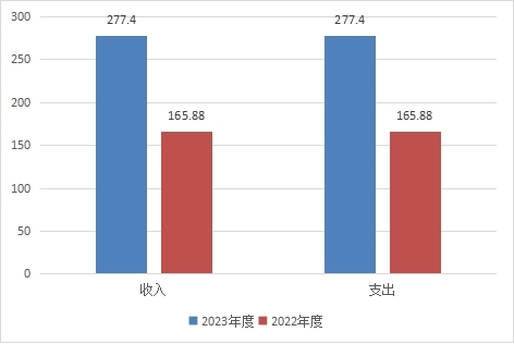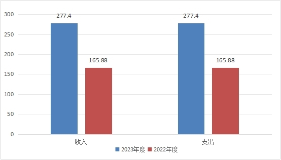2023年度收、支总计均为277.4万元。与2022年度相比,收、支总计各增加111.52万元,增长67.23%。主要变动原因是本年度新增项目《泸州烈士英名录》编纂及印刷支出49万元;本年度完成提升改造工程的质保金及代建费支出。