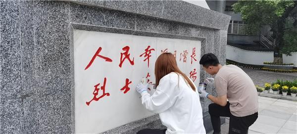 (对革命烈士纪念碑、烈士名言墙等进行填漆)